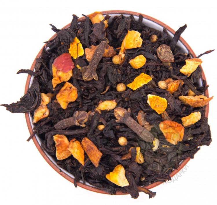 Чай индийский, яблоки, корица дробленая, кориандр, цедра апельсина, гвоздика, ароматизатор