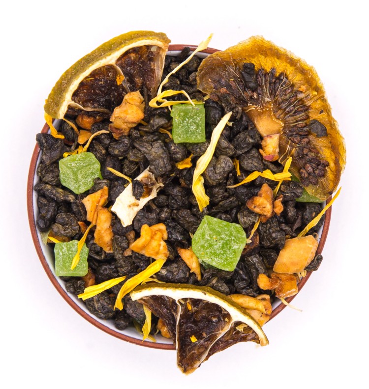 Представляем вашему вниманию уникальный зеленый чай ароматизированный "Кактус - киви". Этот чай является прекрасным сочетанием чайного листа, свежих яблочных кусочков, ананаса, лайма, календулы и уникального аромата "Кактус".