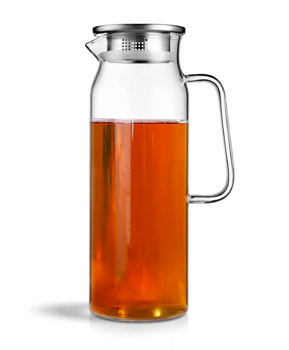 Кувшин Сангрия стеклянный прозрачный с фильтром крышкой объемом 1,8 литра для горячих и холодных напитков. Крышка надежно крепится, не выпадает при наливе и отлично блокирует чай, травы, фрукты и другие добавки. Компактный формат позволит легко поместить кувшин в дверцу холодильника или морозилку. Кувшин выполнен из боросиликатного стекла – это делает его легким и крепким, вы легко можете кипятить воду в кувшине на огне и плите. Также для вашего комфорта кувшин Сангрия оснащен длинной и удобной ручкой.