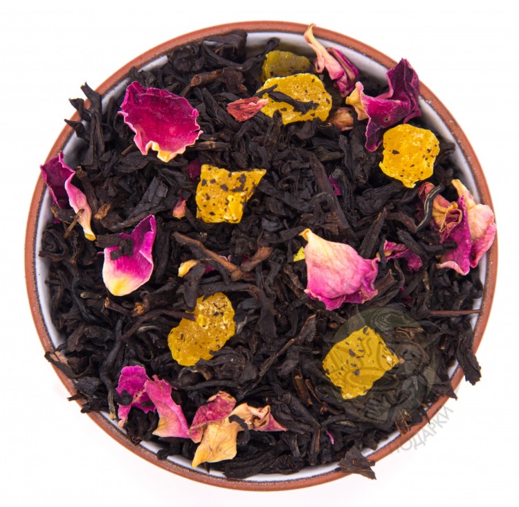 Чай черный индийский Ассам, ананас цукат, роза лепестки, маракуя сублимированная, ароматизатор