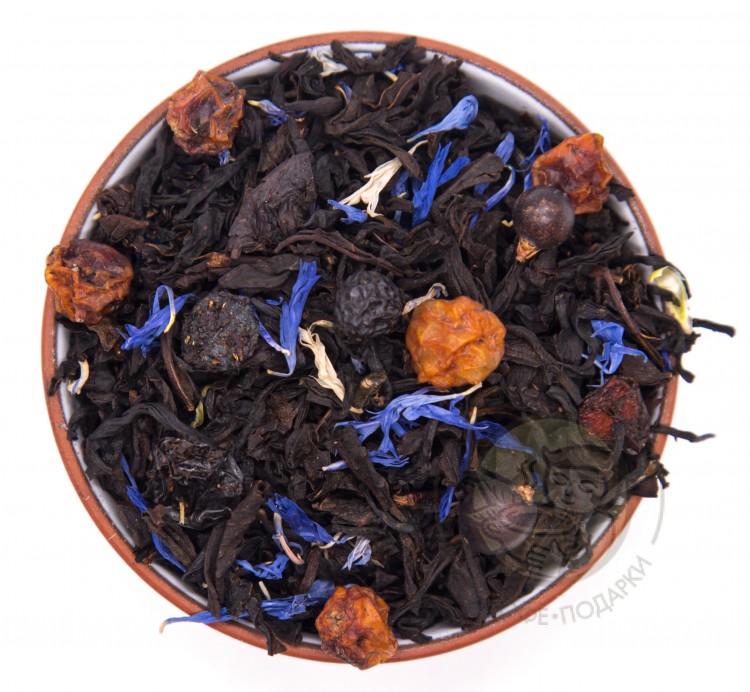 Чай индийский Ассам, ягоды можжевельника, ягоды барбариса, цветы мальвы, ароматизатор