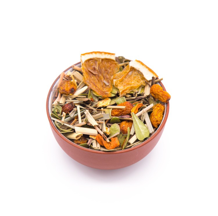 Лемонграсс, толокнянка лист, апельсин цедра, апельсин чипсы, ягоды облепихи, лилия лепестки