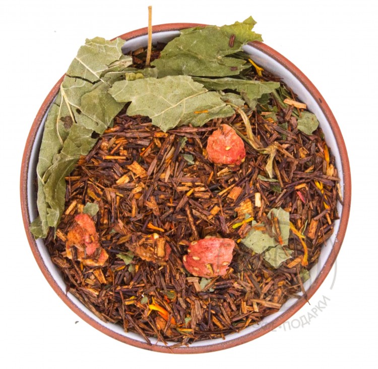 Ройбос, кусочки клубники, сафлор лепестки, листья смородины, пищевой ароматизатор