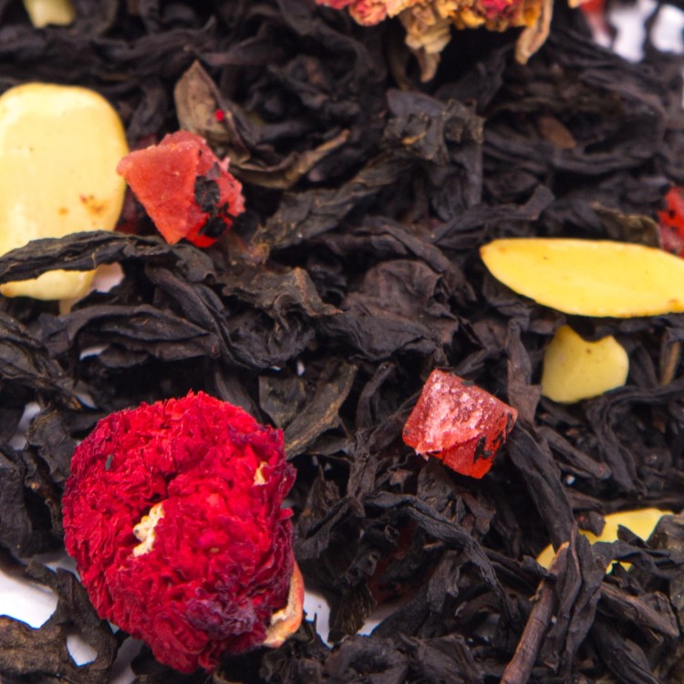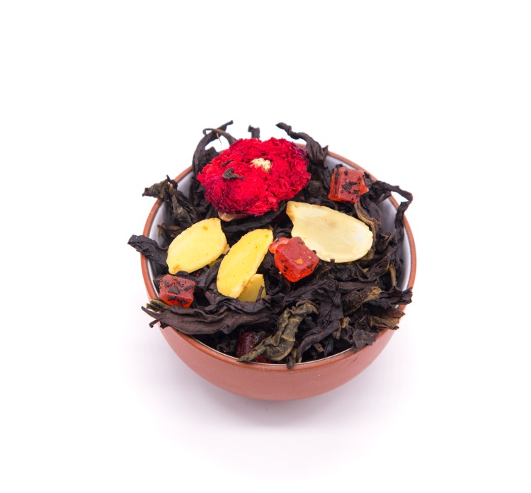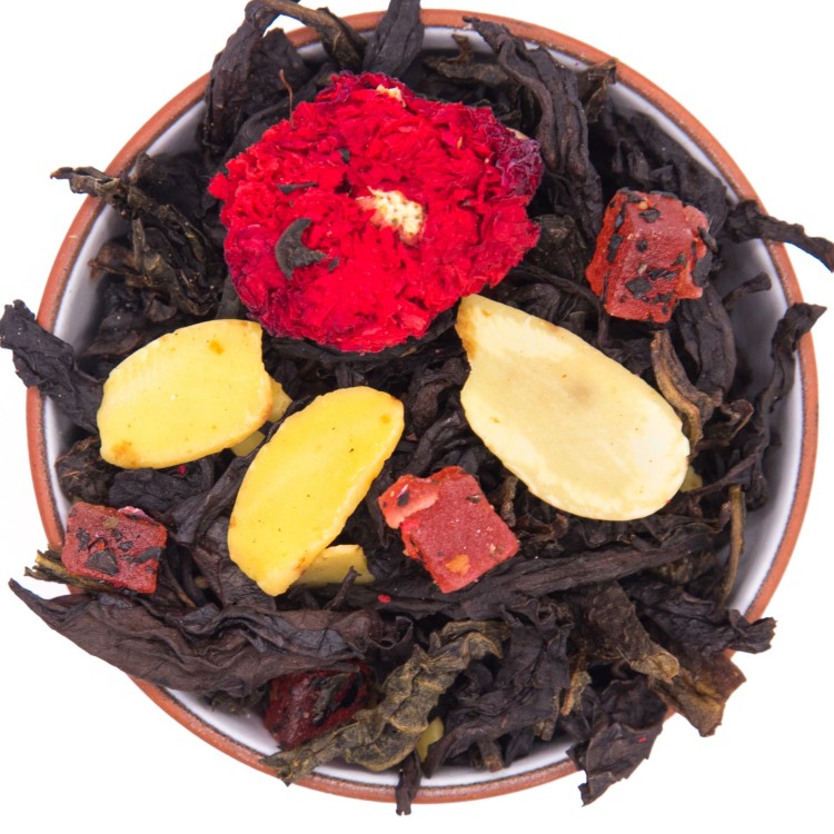 Улун Да Хун Пао, кусочки ананаса, цветы граната, лепестки миндаля, аромат карамельный ликер